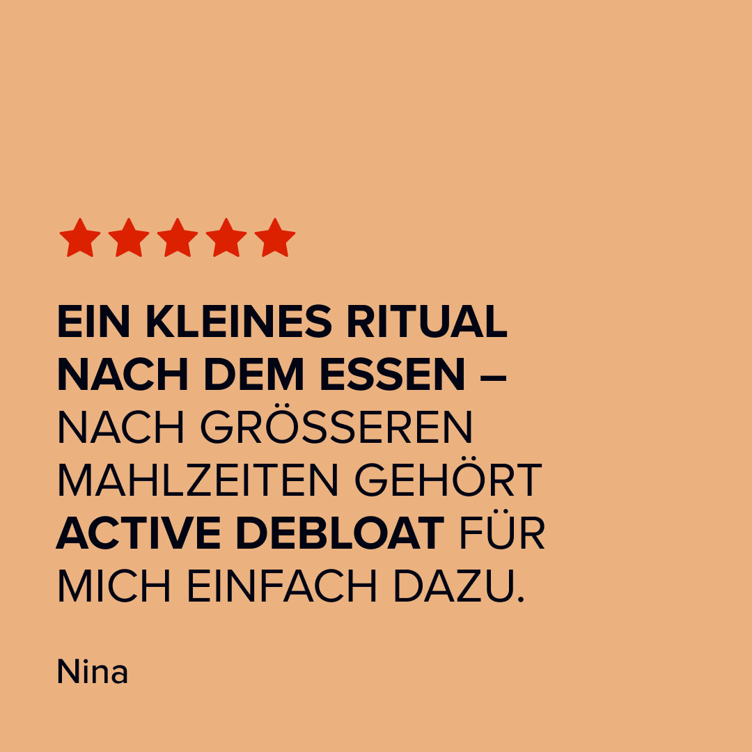 • Der im Active Debloat enthaltene Kümmel unterstützt die Verdauung und die Linderung von Blähungen¹.