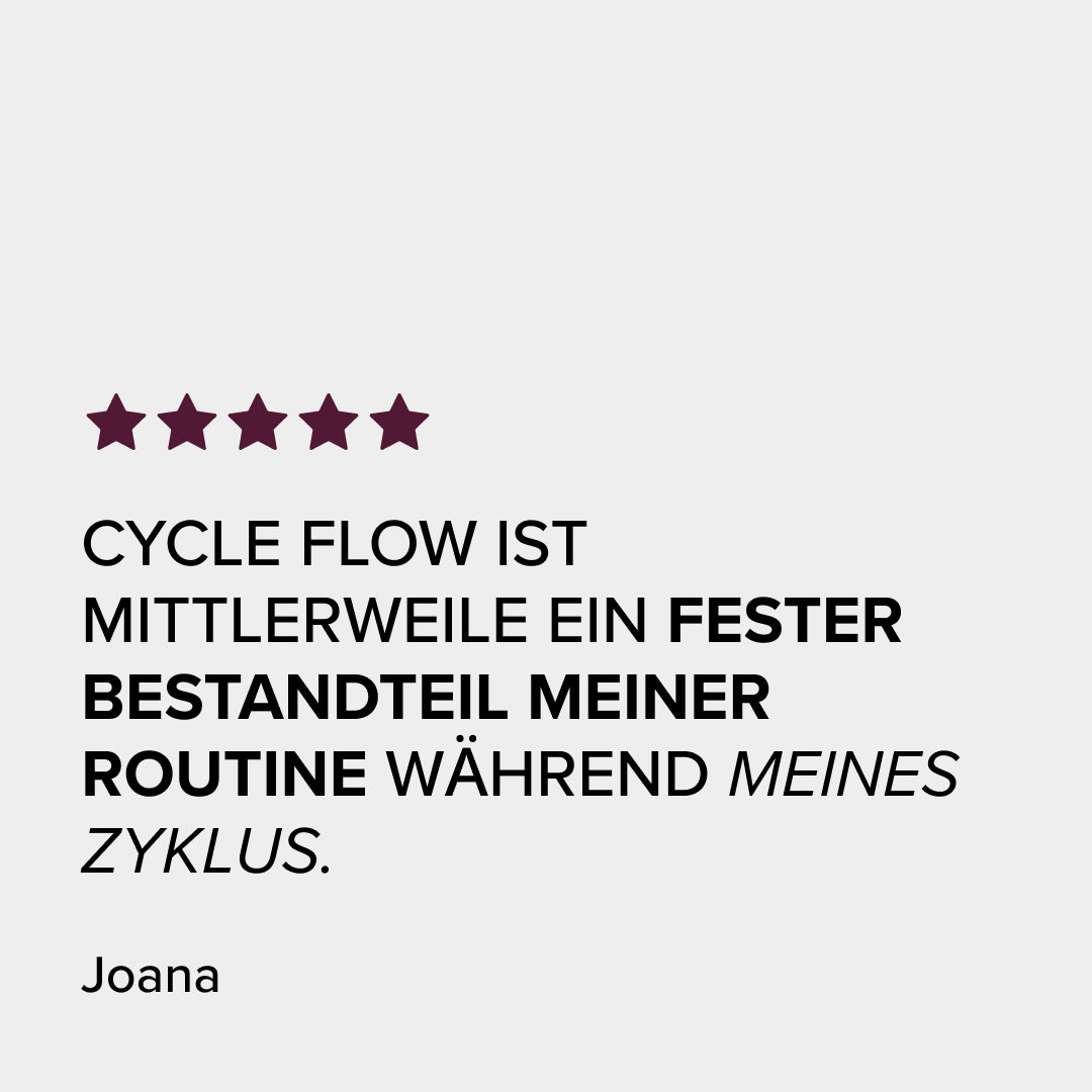Calcium und Magnesium unterstützen zusätzlich den Energiestoffwechsel⁵,⁶, wobei Magnesium zudem Müdigkeit und Erschöpfung verringert⁵. So kannst du deinen Körper in deiner täglichen Routine mit Cycle Flow ergänzen.