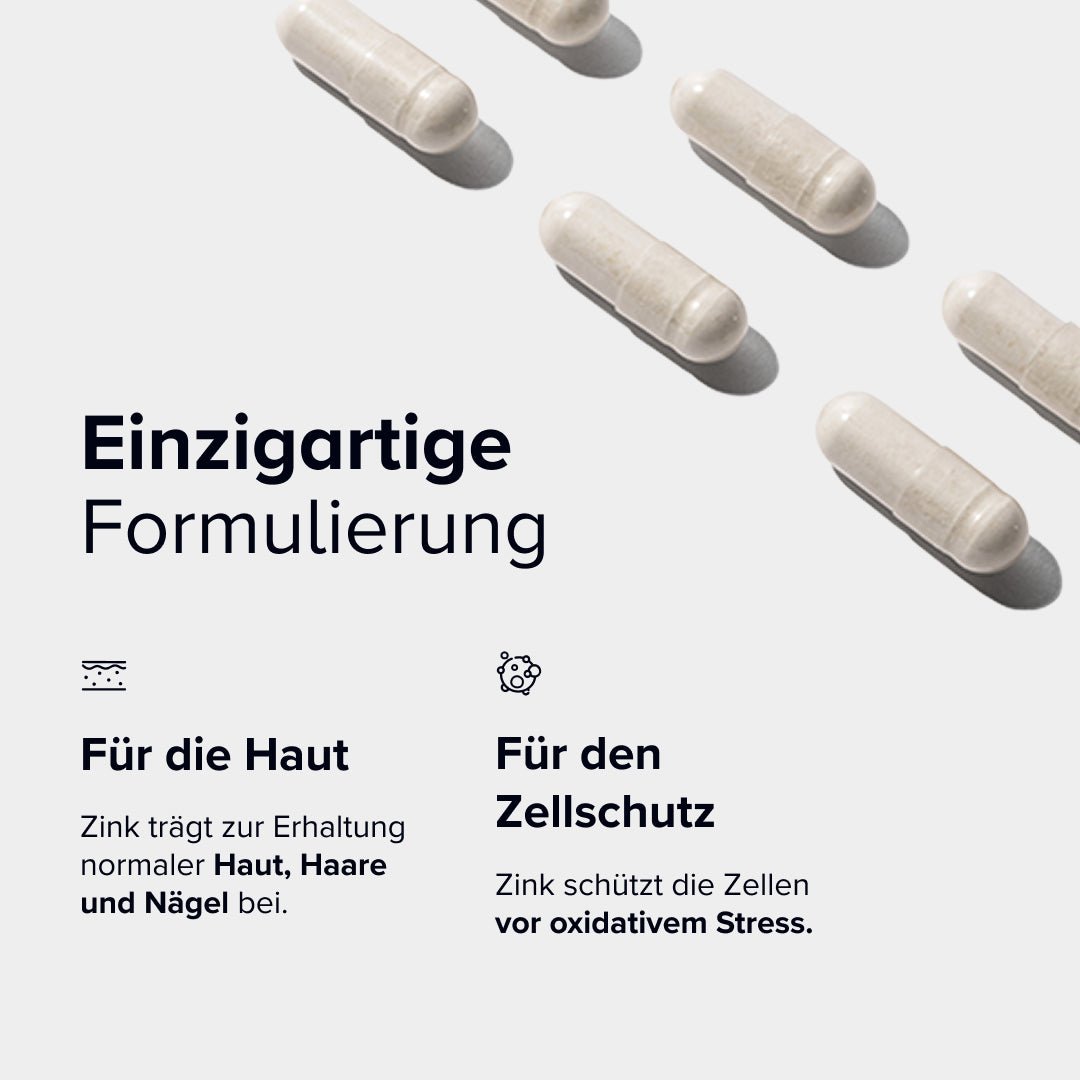 Das in den Dermabacs® enthaltene Zink trägt aktiv zur Erhaltung normaler Haut, Haare und Nägel bei¹ und schützt die Zellen vor oxidativem Stress¹.