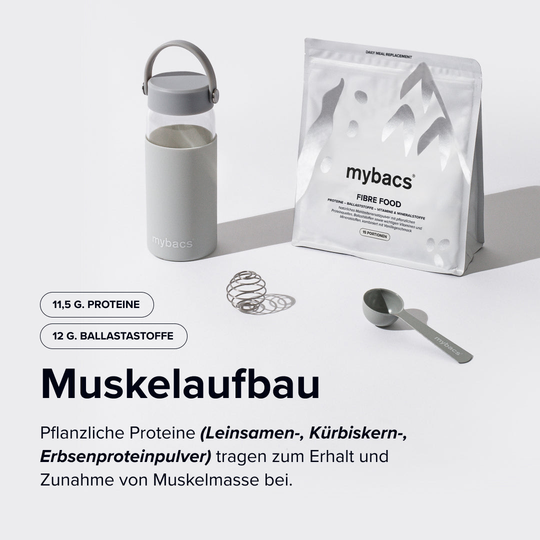 Die in Fibre Food enthaltenen Proteine tragen zur Erhaltung und zu einer Zunahme an Muskelmasse bei.³