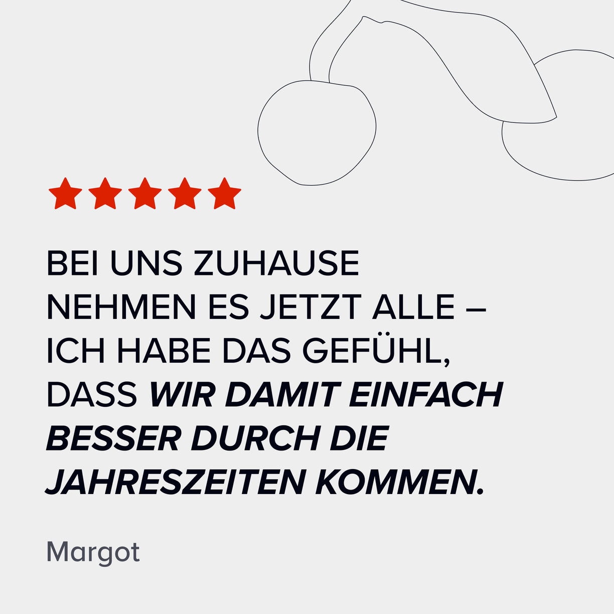 Dank der einfachen und schmackhaften Form ist es ideal für die ganze Familie. Es ist besonders nützlich wenn eine zusätzliche Ergänzung der Ernährung erwünscht ist, und kann in stressreichen oder anstrengenden Phasen eine sinnvolle Bereicherung darstellen⁴. Die in den Nutribacs® enthaltenen Vitamine C, B6 und B12 unterstützen das Immunsystem und verringern Müdigkeit⁴.