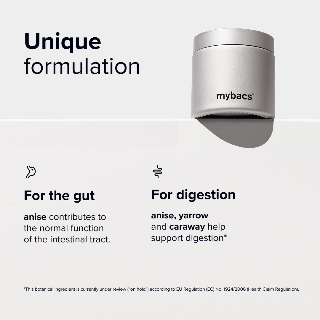 Anise helps support the function of digestive juices³, while yarrow facilitates digestion and contributes to digestive comfort²