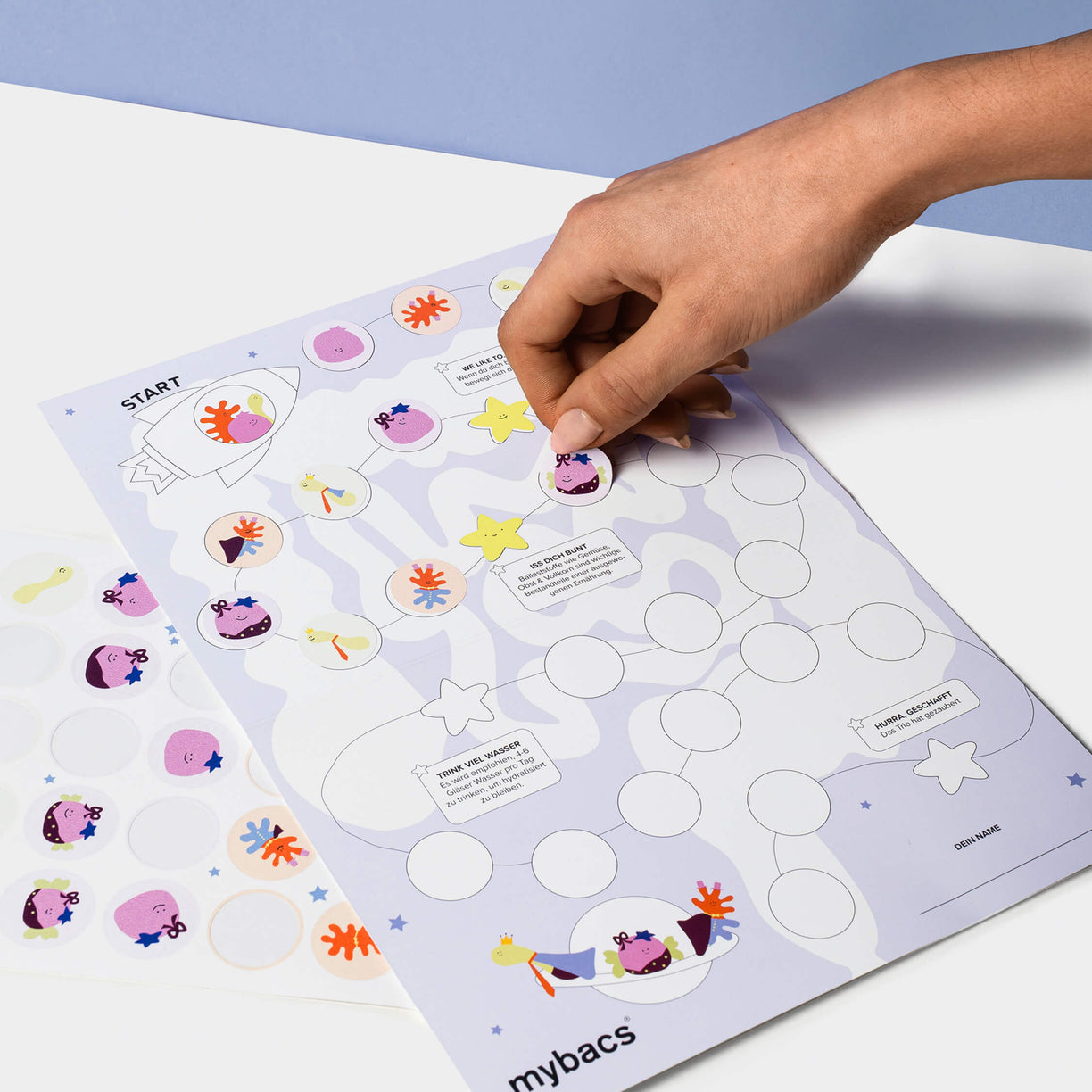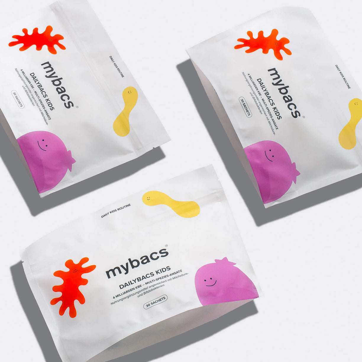 L'assunzione regolare aggiunge un elevato numero di ceppi batterici attivi al microbioma intestinale - con Dailybacs® Kids 4 miliardi di CFU per stick diretto da 10 batteri lattici e bifidobatteri vivi accuratamente selezionati. L'aiuto per stabilire una routine quotidiana per il vostro bambino.