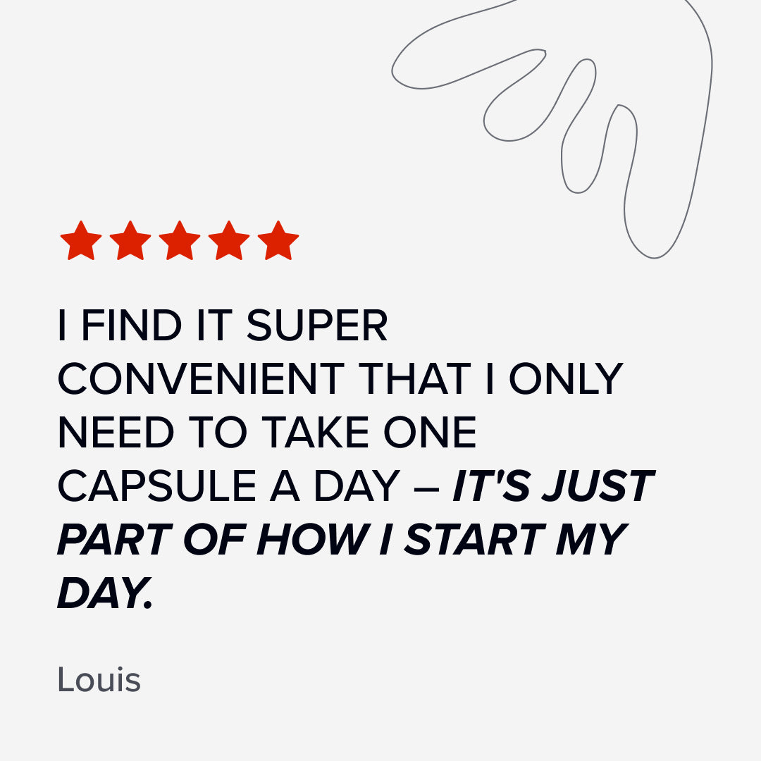 Prendere una capsula al giorno con un bicchiere d'acqua. Idealmente a stomaco vuoto al mattino, ma anche in un altro momento senza problemi.