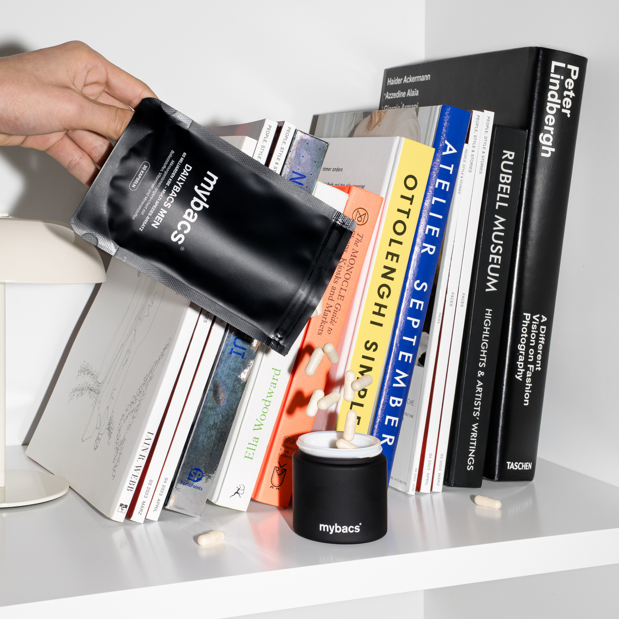 I Dailybacs® Men sono un'opzione per gli uomini che desiderano integrare la loro dieta quotidiana in modo semplice con una combinazione di Colture batteriche, estratti vegetali, fibre, vitamine e minerali vorrebbe integrare.