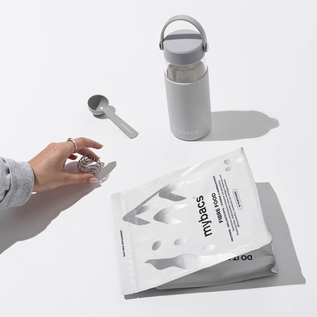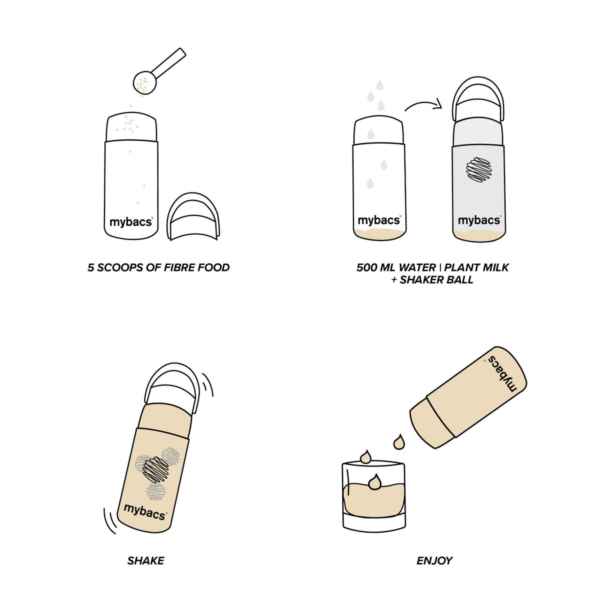 Aggiungere 5 misurini (60 g) di Fibre Food nello shaker al mattino.