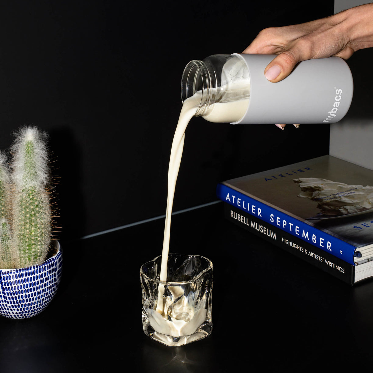 Aggiungere 500 ml di acqua o latte e la sfera dell'agitatore.
